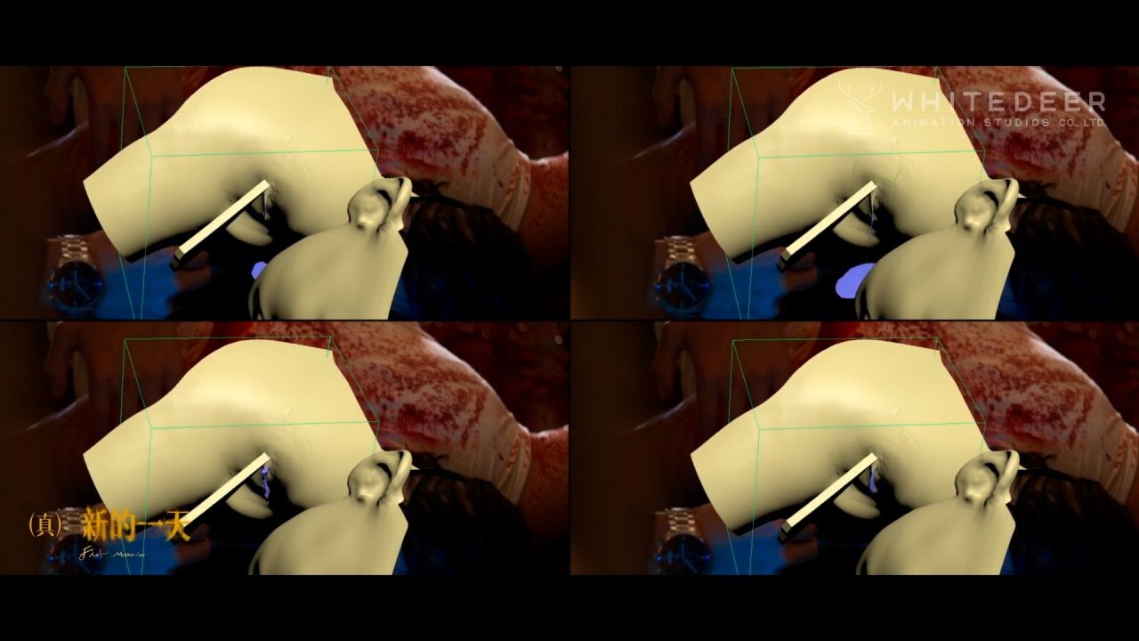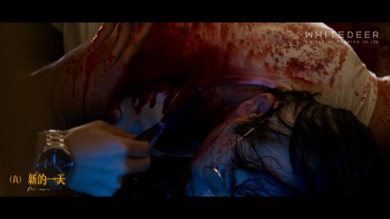 白鹿動畫共同創辦人鄭詠倫舉電影《(真)新的一天》為例,介紹動畫與視效如何輔助電影製作血腥畫面,好比玻璃碎片從肉體取出,為了讓視覺更寫實,特別細膩製作玻璃與皮膚拉扯的動態,以及玻璃正式取出後皮肉收縮的模樣,接著血從皮肉中外溢而出。另外,電影角色跳樓的場景,透過 CG 設計血流出的形狀,以及衣服唯美飄落各種姿態、雨落下受到不同風力吹拂的各種展示,這些隱身在寫實畫面中的動畫與視效,都是團隊與劇組大量討論下,藝術與寫實的完美權衡。