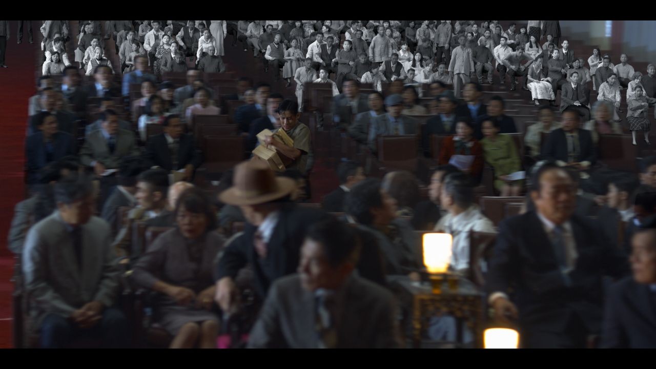 另外,復古交通工具以及人物也是花費許多製作的心力。罡風創意設計了各種復古老爺車及顏色的測試,但是最終擺放到實景中時發現過多的顏色會讓視覺過於雜亂,最後統一以暗色呈現。《商魂》中的群眾演員使用了 3D 掃描取樣不同臨演的身形比例,由於擷取下來的 3D模型都是三角面,不利於後續動作表演,所以這些掃描後的 3D模型都會在 Maya 重新建模、拆 UV 、上材質。曾彥偉特別舉劇中股東大會為例,這些 CG 臨演要與實拍整合,要特別注意實拍的透視,及實拍光線變化。