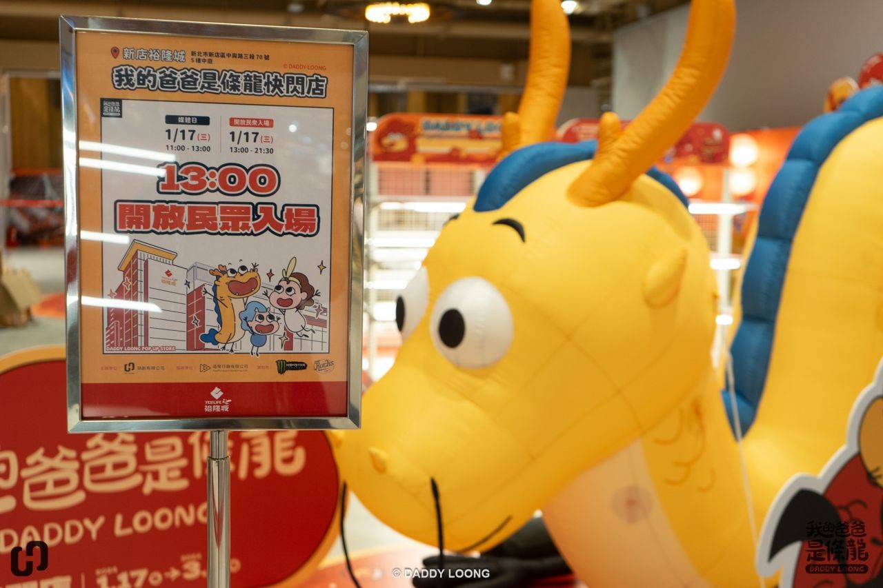 以及千萬別錯過收編龍爸時間,快閃店準備限定限量週邊商品來大肆寵粉,尤其超過 160 公分龍爸絨毛玩偶是絕對必收款,售價 1290 元,限量 450 隻!以及春節紅包袋、春聯、Q版龍爸娃娃、龍爸暖手抱枕、生活療癒小物等推薦商品,通通讓粉絲買好買滿帶回家!讓所有來賓們體驗充滿歡樂有趣的年節氛圍,在春節前夕就能沾沾「龍」氣,搶盡「龍」頭,讓龍爸陪你一起開啟全新好運一整年!
