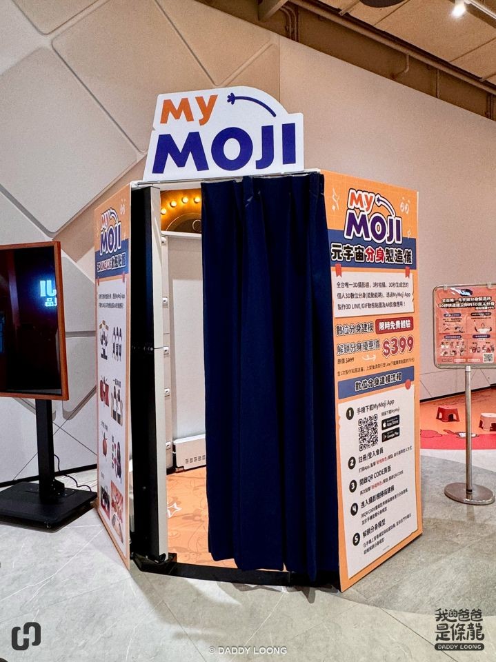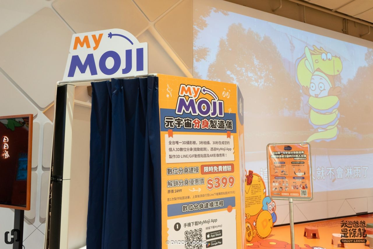 店內更設置 MyMoji 全台首創 3D 太空艙互動攝影棚,快速掃描建立自己的 3D 模型影像,30 秒內建立 360 度真人動態分身,五分鐘就能產生專屬賀年 3D 動態 line 貼圖,體驗價每次 NT$399 元,讓您在群組中發好發滿,令大家好生羨慕!還有結合龍爸一家插畫的春節限定款拍貼機,印製專屬紀念貼紙相片,和讓粉絲們迫不及待、大試手氣的龍爸扭蛋機,內容包含印章、鑰匙圈、易拉扣等,以及值得收藏紀念的明信片機,讓你「龍年躍龍門、好運跑進門」!