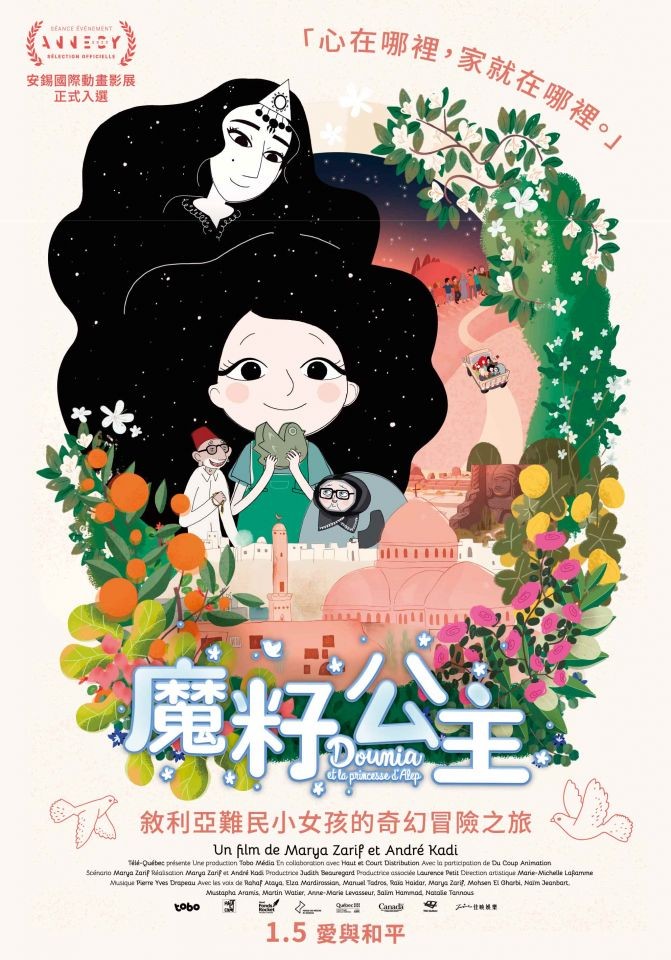 從 2022 年開始的烏俄戰爭,到今年再度爆發的以巴衝突,在不平靜的世界中也讓更多無辜的平民百姓無家可歸。在 2024 年 1 月 5 日即將於台灣上映的動畫新片《魔籽公主》中則以童趣、奇幻的筆觸勾勒無情戰火下的純真希望,描寫六歲的敘利亞小女孩「杜妮亞」在內戰爆發後必須逃離家園的故事。該片 2022 年在素有動畫界「坎城影展」美名的法國「安錫動畫影展」中首映後廣獲好評,台灣也將成為亞洲第一個正式院線上映的國家。