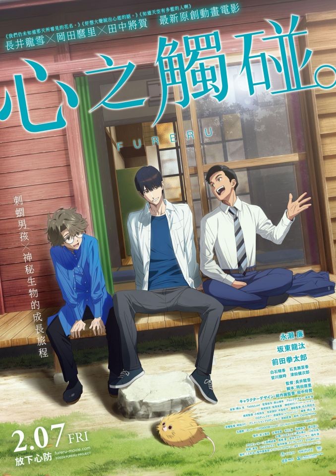 《心之觸碰。》除了公布定檔 2 月 7 日在台灣上映外,首支電影預告也同步公開。故事細膩刻劃三位男孩從小一起長大,成為 20 代的青春少年,經歷許多友情和感情上的考驗,還有長得很像刺蝟的神祕生物「芙雷嚕」出現,更是《心之觸碰。》的最大可愛亮點。《心之觸碰。》由《SPY×FAMILY間諜家家酒》製作公司 CloverWorks 擔綱製作,畫面表現絕對一流,《心之觸碰。》之前榮獲 2024 年富川國際動畫影展(BIAF)三項特別獎殊榮。動畫用獨特的劇情故事和細膩鋪陳讓觀眾產生共鳴和感動,除了觸動觀眾的心,在日本上映時不少觀眾表示,在電影院更能感受到結尾大場面的視覺衝擊和角色的感情交流與互動,直抵人心深處。