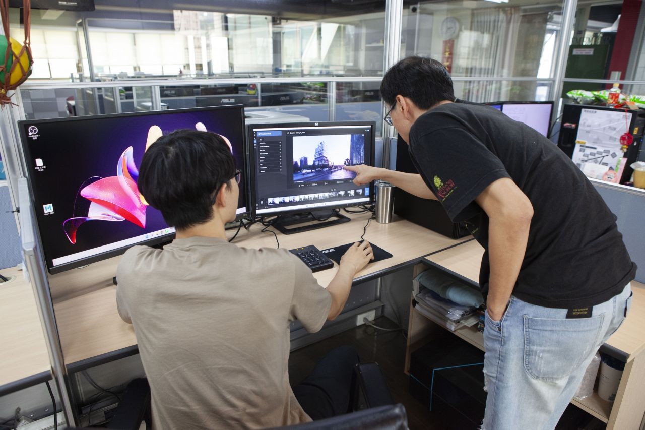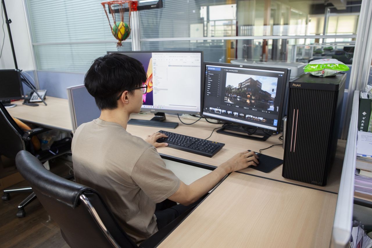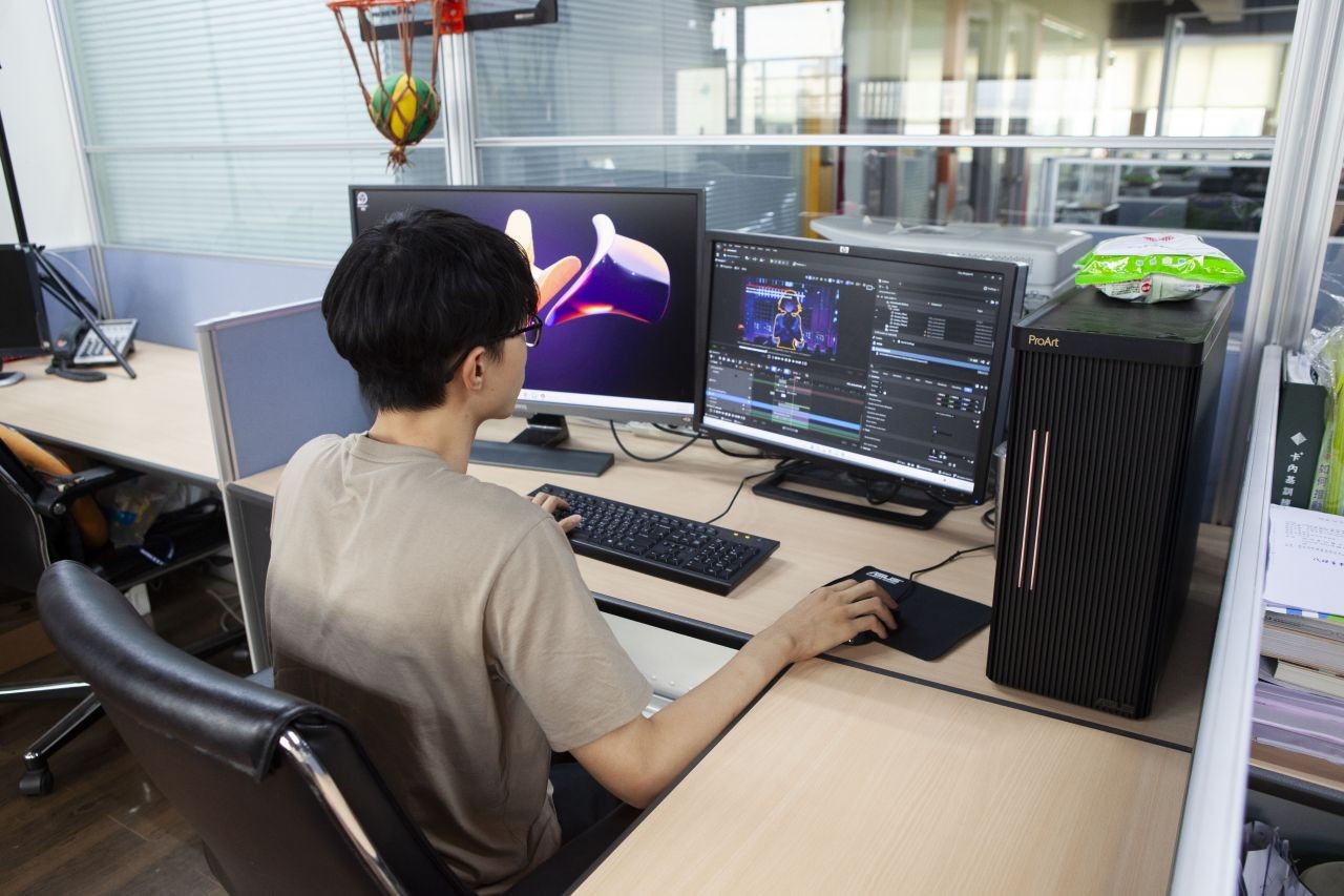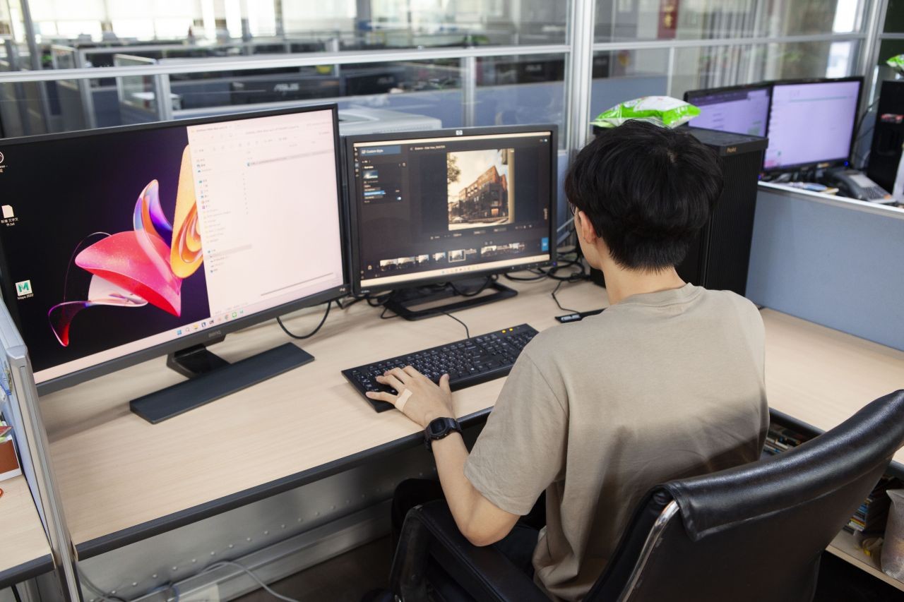 柳冠亨:在朕宏國際的實習過程中,有幾個方面給我留下了深刻的印象。首先,硬體設施方面公司提供了非常專業的裝備,包括華碩 ProArt Station 工作站和 32 吋 4K 解析度的雙螢幕,這樣的設備讓我能夠在廣闊的數位空間中無後顧之憂地進行高效能的工作,尤其是在處理 3D 動畫和複雜場景時,它們的存在顯得尤為重要。