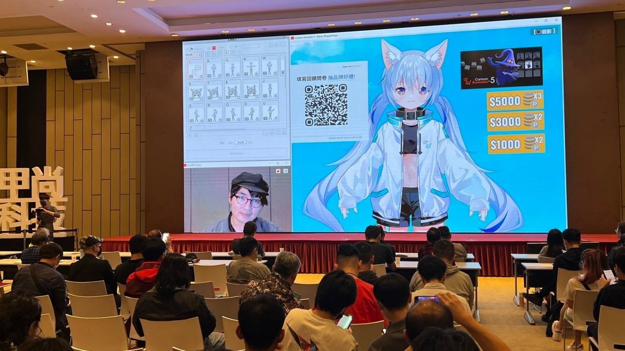 此外,Cartoon Animator 也內建許多虛擬角色,創作者也可以使用自己設計的形象,將虛擬角色加入互動,拓展動作與場景的可能。在 Cartoon Animator 中,創作者可以根據影片內容調整動態,並結合 After Effects 後製處理。Jerry 分享,國外已有許多 YouTuber 以虛擬角色成為直播中的固定互動夥伴,使內容更加有趣。甲尚科技以 Cartoon Animator 5.3 所設計的日系虛擬角色 Kiko 為代言人,透過快捷鍵驅動效果與表演,軟體內也提供大量素材包,使設計更加容易,現場也展示了 Kiko 與觀眾互動的橋段。