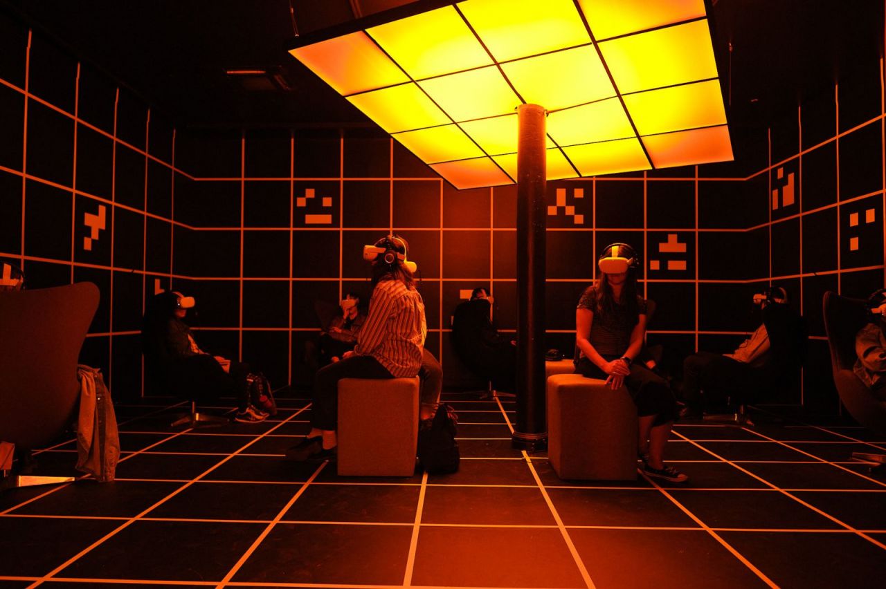 第二是「硬體設置」,隨著一體機與科技的發展,VR 頭戴顯示器愈發輕巧、也誕生更多使用如手部或眼球追蹤技術的作品。因此,過去需要大量外部感應器的精密追蹤裝置已不再是唯一選擇,這也意味著在同一展區中,可以根據硬體資源靈活地展示不同類型的 VR 作品,無論是 VR360 或是互動型 VR,都能以更少的設備需求,實現高品質的沉浸式體驗。