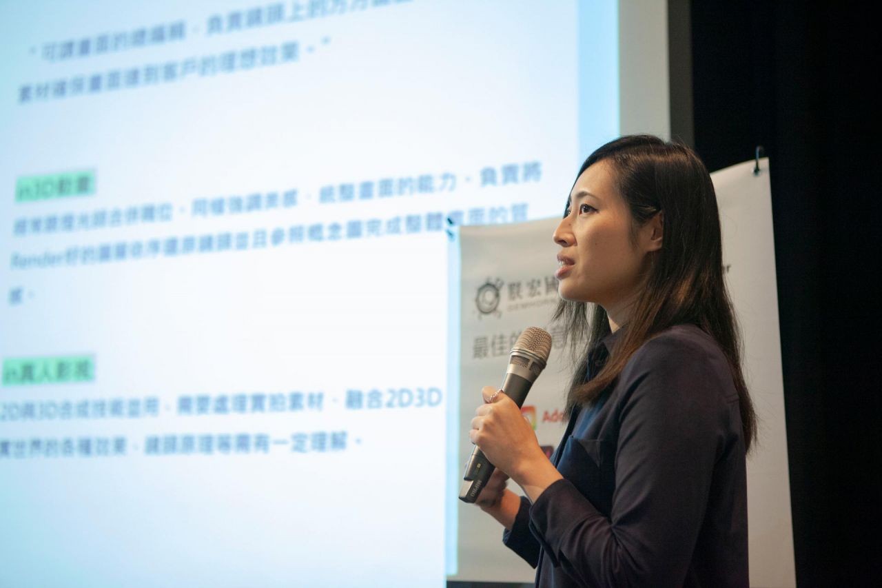 接著,廖庭瑩也和現場來賓分享海外求職策略與心得。在美國,常用的求職網站有 Linkedin、Glassdoor 和適合自由藝術工作接案者的 Upwork、Mandy Network 等。另外,直接在 Google Map 上搜尋公司類型也可能挖掘到目標地區的新興工作室。