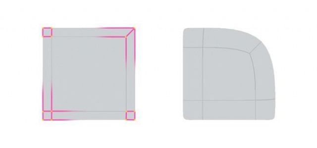 再來聊聊關於手動改線,從我們的保護線開始,因為它們直接對邊緣結構造型起到了關鍵性作用。如果我們回到最最基礎的環節,我們有下面這兩個例子,一個是有軟軟的轉角,一個是比較硬的轉角,看到不同之處了嗎?