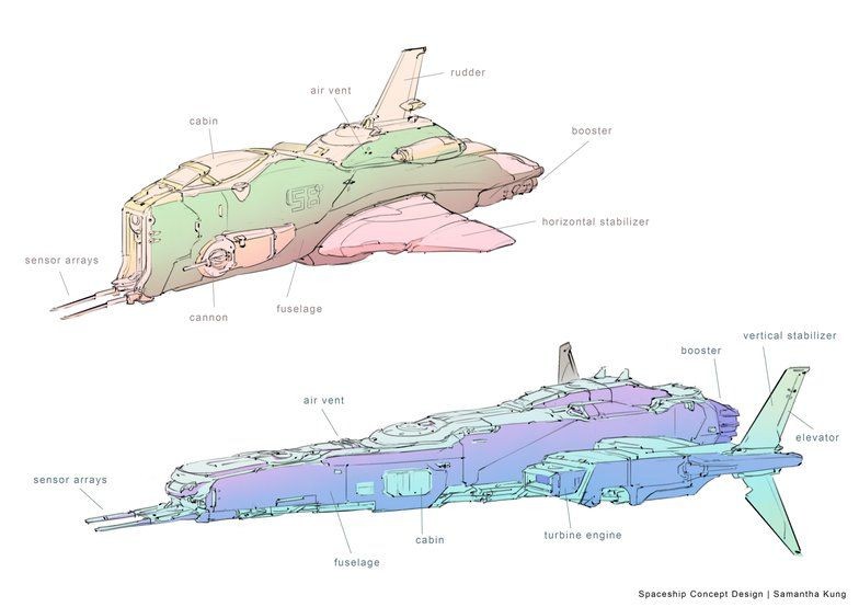 在開始繪製縮圖之前,花時間研究和分析主題是一項重要的課題。必須搜索宇宙航母的結構和剖面圖,以了解它在現實中是如何工作的。宇宙航母結構的部件很多,設計時需要特別注意的基本航空母艦功能有:機身、渦輪發動機、客艙、感應器、電梯和通風口。
