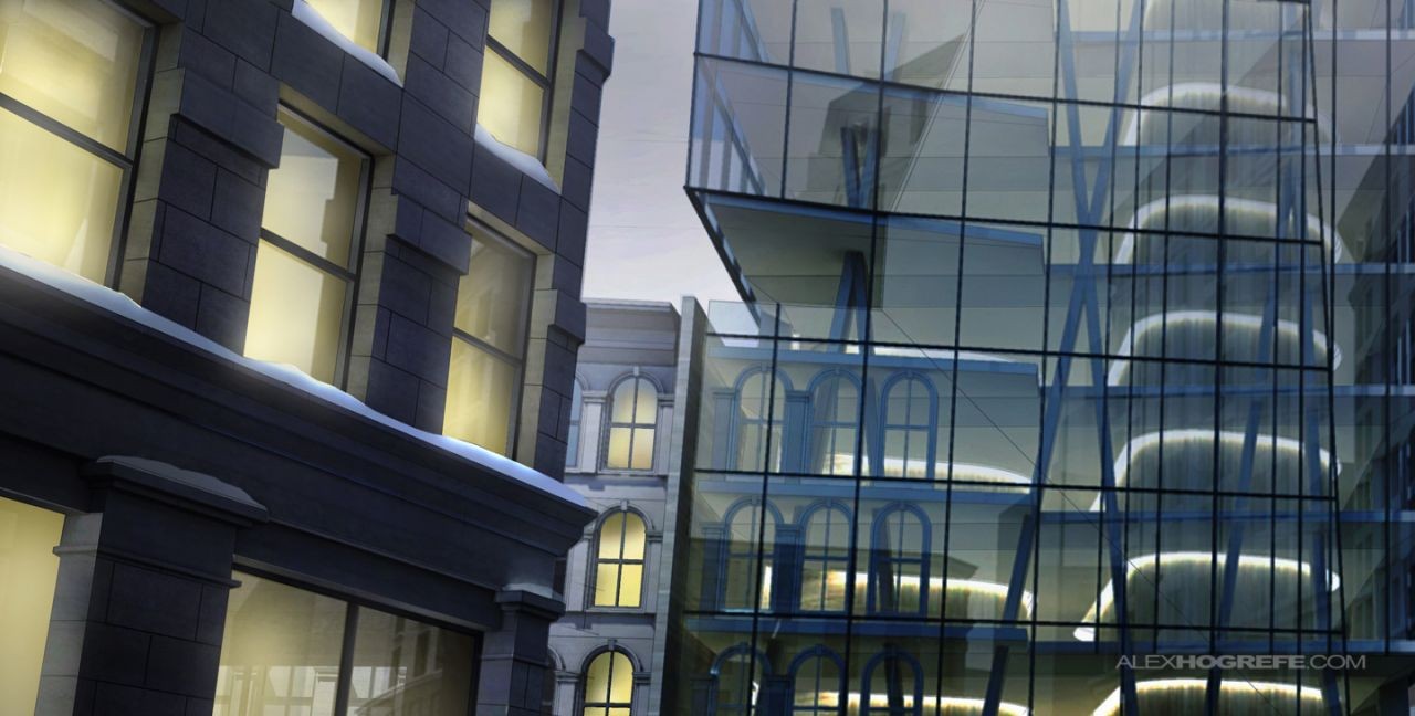 Alex:並非每個人都有能力用超多盞燈來渲染大型場景。我就是那種在多數情況下必須用手繪的方式來增加光源,因為我沒有太多的電腦運算能力。起初,這個方法看起來是很無趣的。但你試想,如果你在 3D 裡每增加一盞燈,就會花更多時間去運算,所以當你知道如何在 Photoshop 增加燈光的方式,會是一個很好的備用資源。我有特定的方式可以不需花太多心力就可以增加乾淨、擬真的效果。我使用這個郊外雪景來做為本次教學的基礎。模型的規模很大,而且有太多窗戶需要渲染。以下的步驟展示我如何在 Photoshop 中增加光線的方式。