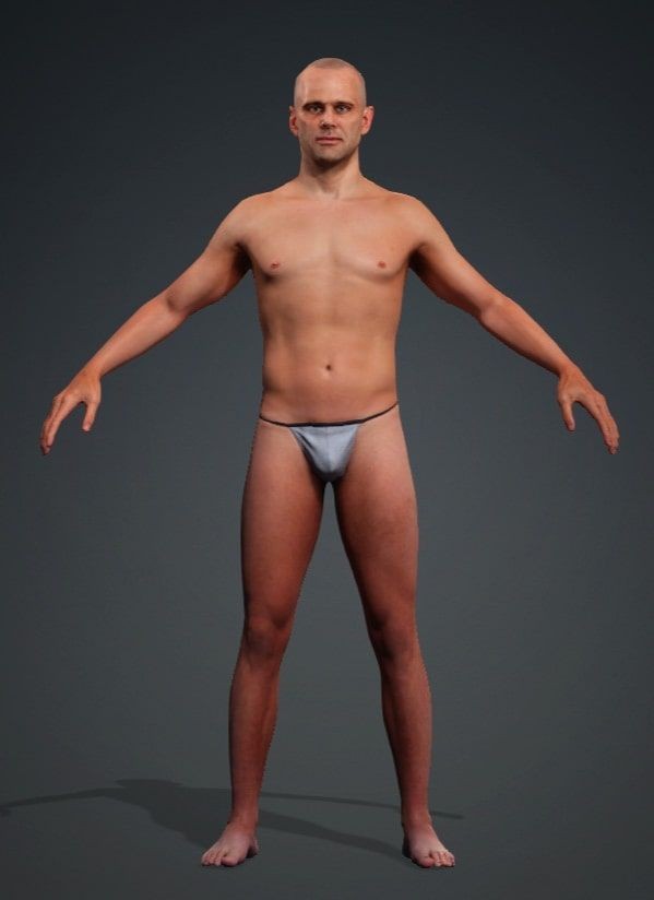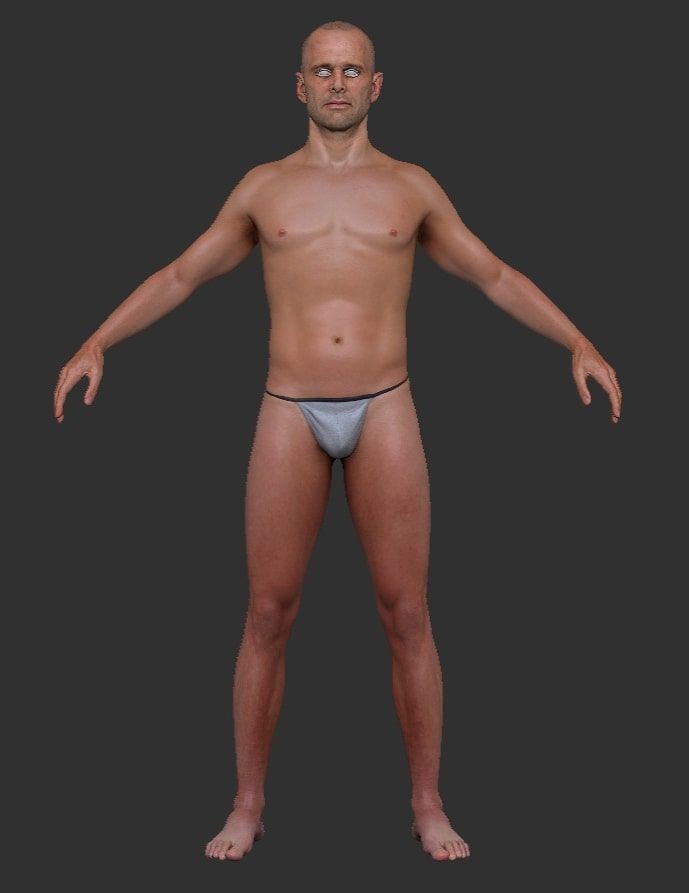 我們要製作影集《異塵餘生》裡的 Cooper,因此首先要從 Character Creator(以下稱 CC)的 Content > Actor > Base 資料夾載入一個男性基礎身體。關於初始設定,我會在 Scene 頁籤中選取角色,然後點擊選單列中的 GoZ 按鈕,將該網格面傳送到 ZBrush。在對話框提示中,我會取消勾選 Enable GoZ Plus — 在此示範中,我不會焙刻皮膚貼圖和毛孔細節,但如果這對於著手開始您想要製作的角色有用的話,可隨意勾選該方框。我要做的最後一件事是勾選 Eyelash 和 Tear Ducts,讓它們在 ZBrush 中可從基礎身體獨立出來。從技術上講,這不是必須的,只是我喜歡的工作方式。最後,選取 Current Pose 並按下 GoZ 按鈕;此動作僅傳送作為我們角色起點的基本拓撲模型。