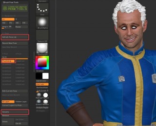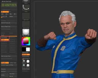 我們的姿勢是以圖層儲存在所有子工具上,所以我們可以開啟 ZPlugin > ZBrush Pose Tools 選單,點擊 Refresh Pose List,在可選素材庫中應該可取用姿勢。選取該姿勢並將其重新命名為有意義的名稱。請檢閱本文以取得更多 ZBrush Pose Tools 功能的相關資訊。