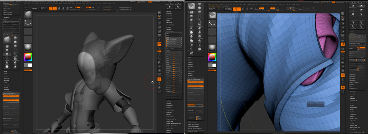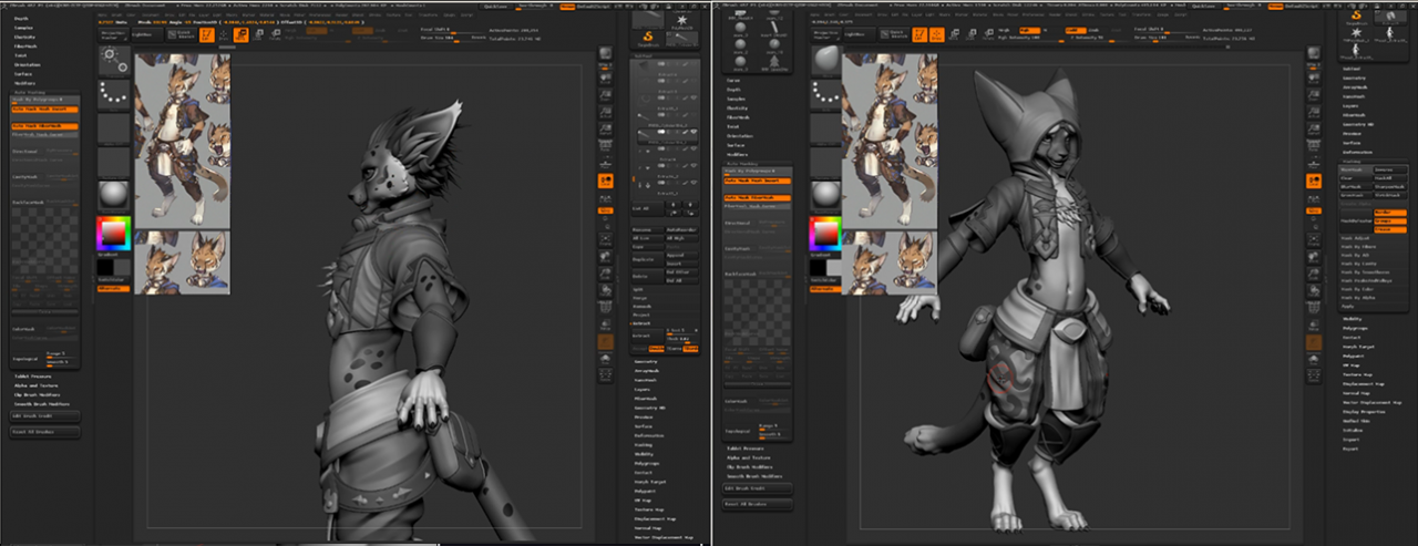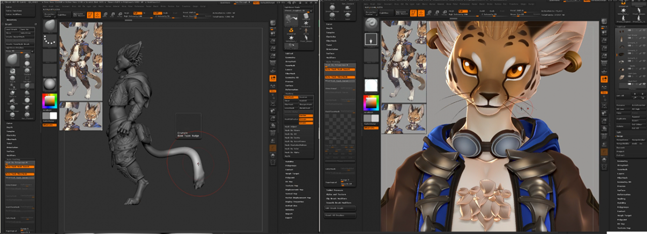 目前公開了一個名叫 Serval Rider 的角色製作流程,是一隻是看起來超帥氣的狐狸和他的騎乘獸,而該藝術家嘗試只用 Zbrush BPR 開發具有插圖感的新造型,而在影片中也分了好幾段去呈現他設計的每個步驟。