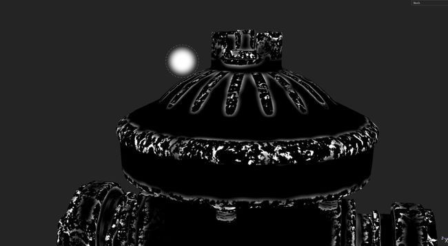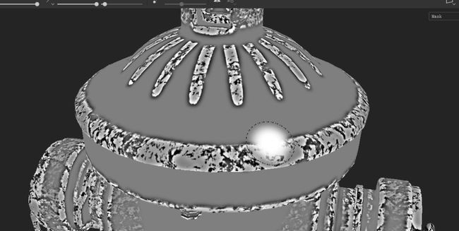 接著加入一個色階,調整Sliders可以得到磨損內部的邊緣區域,主要用於製作邊緣位置的灰塵,如果反向調整色階就能夠得到磨損外部的邊緣區域。
